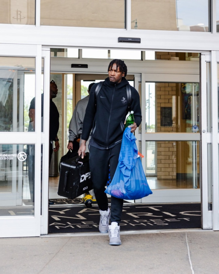 PG电子(PocketGames) 火箭众将当天OOTD: 申京宽松灰色套装 杜兰特黑帽如常 伊森红蓝配