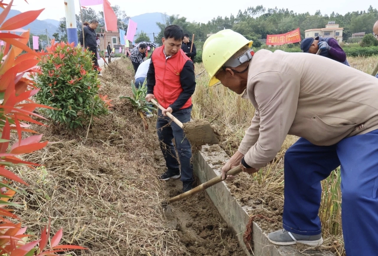 詹世健(图中红衣者)组织巨匠冬修水利