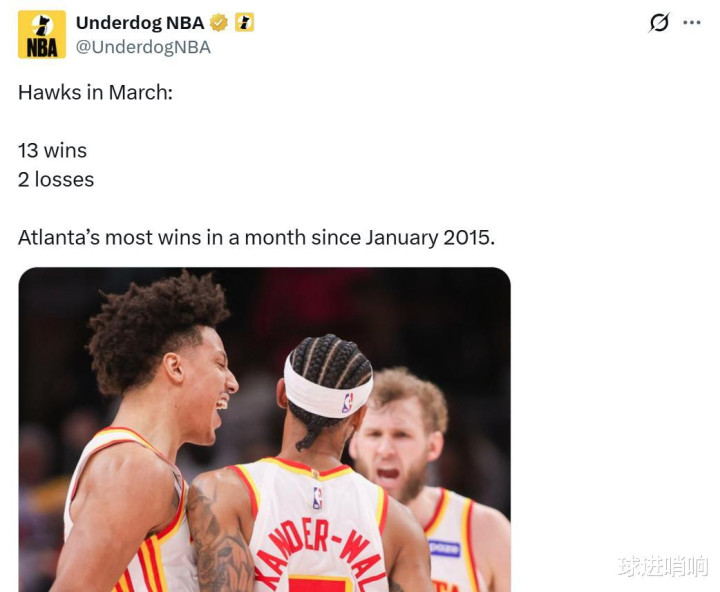 掀起东部第二,老鹰近18战16胜破记录!实打实的战绩讲授被1换2贱卖的特雷杨真不冤,新鹰王约翰逊轰20+12+5万能数据胜利并排约基奇。