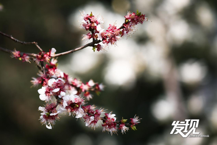精雅的白色花瓣映衬着红色的花瓣,竞相舒展着春日姿容。